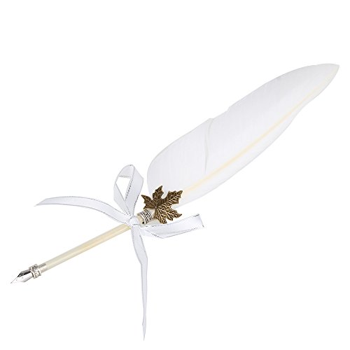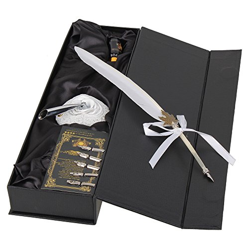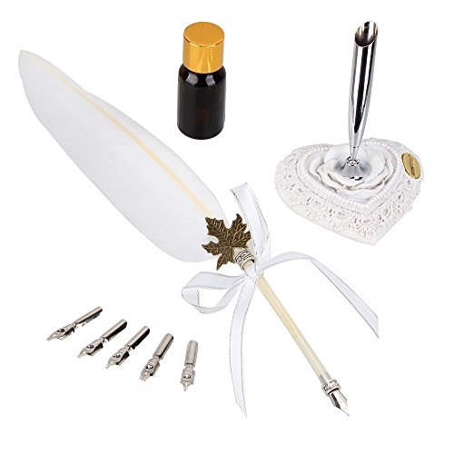 White Antique Swan Feather Quill Dip Stationary Bussiness Pen With Ink Bottle Box Gift