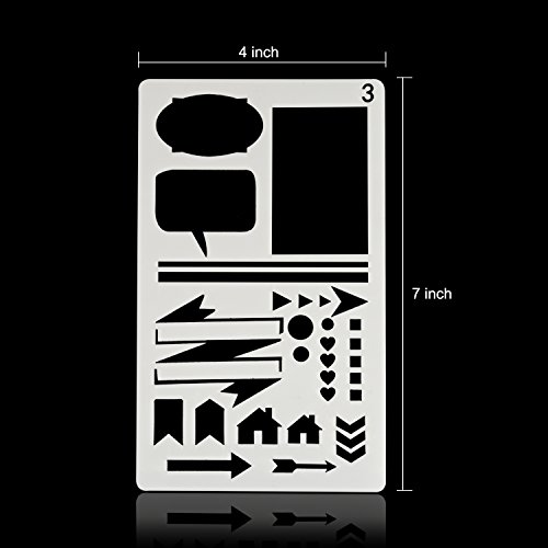 - Application: The size of the Bullet Journal Stencil is 4x7 inch, which can fit for most journal, notebook, organizer, a good tool for journal, decorating, scrap-booking, wall stenciling, fabric decoration, cake decoration, airbrushing, making photo album card, wood burning and more DIY creation.