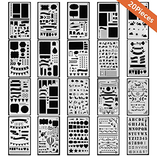 - Package Included: 20 PCS bullet journal stencils with different styles, including various letters, numbers, shapes and icons meet your needs for your perfect daily, personality graffiti or DIY art creation.
