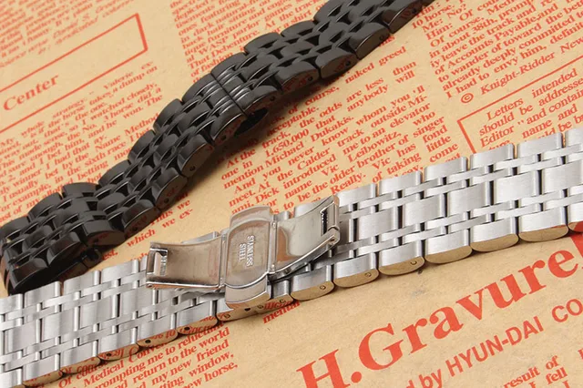 | [해외] 새로운 패션 금속 손목 팔찌 블랙 실버 광택 금속 시계 밴드 스트랩 14 미리메터 16 미리메터 18 미리메터 20 미리메터 22 미리메터 좋은 품질 버클 |