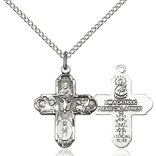 (Bonyak Jewelry Saint Medal Collection)/Baby Stationery/Stationery Sets/DIRECT FROM USA/Sterling Silver 5-Way Pendant 3/4 x 5/8 inches with Sterling Silver Lite Curb Chain