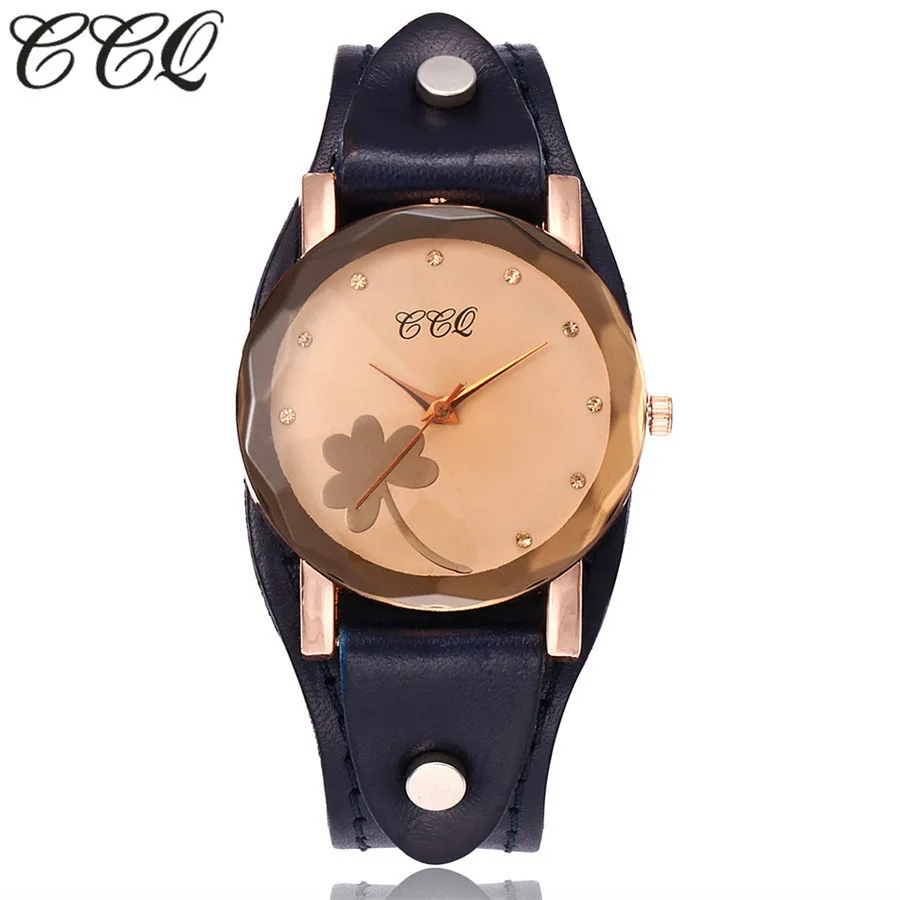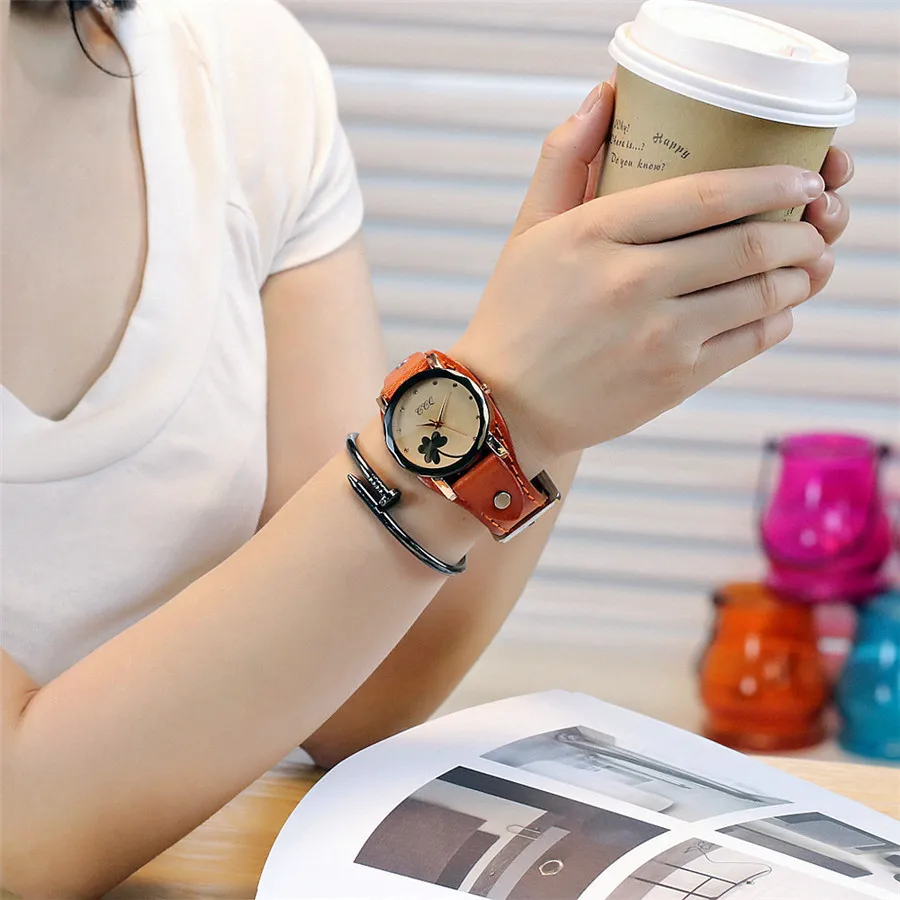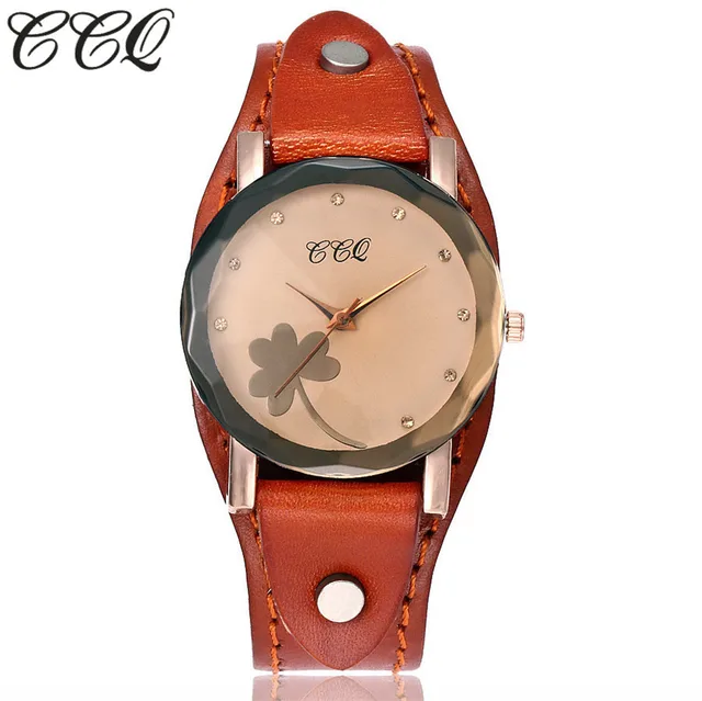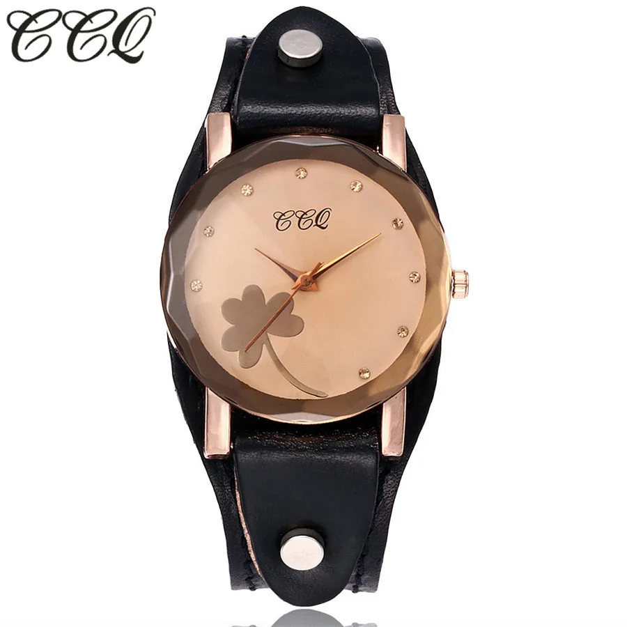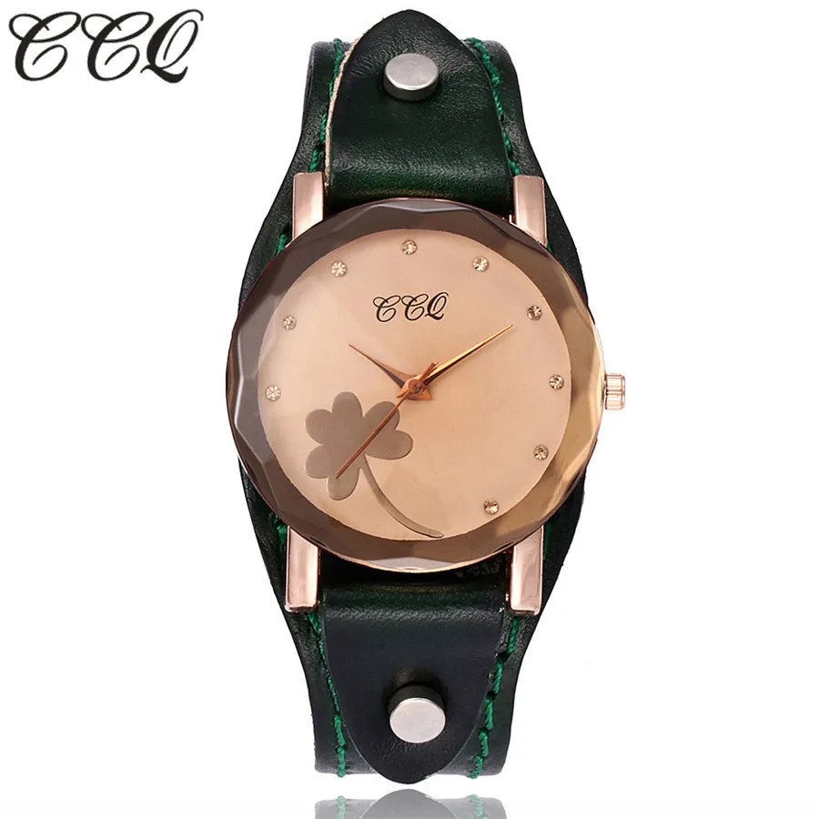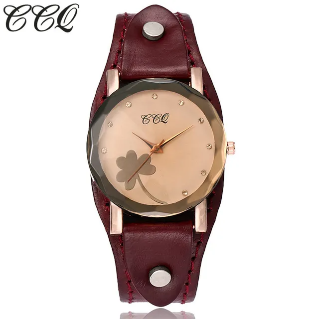 | [해외] 새로운 CCQ 브랜드 빈티지 소 가죽 클로버 팔찌 시계 여성 캐주얼 가죽 석영 손목 시계 선물 시계 Montre 팜므 |