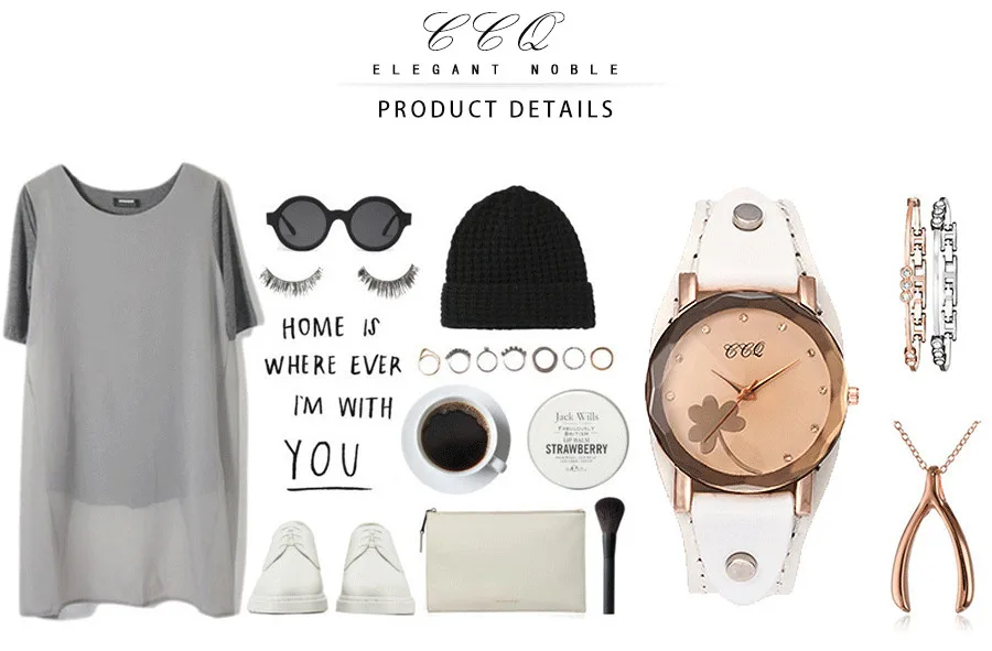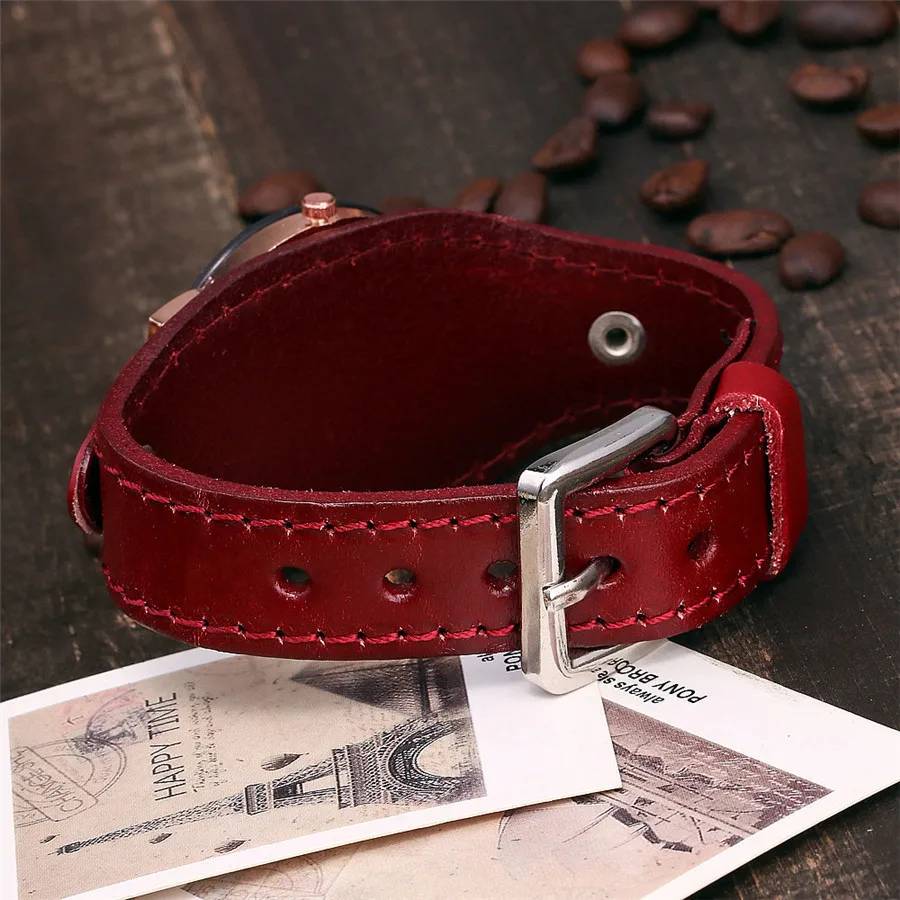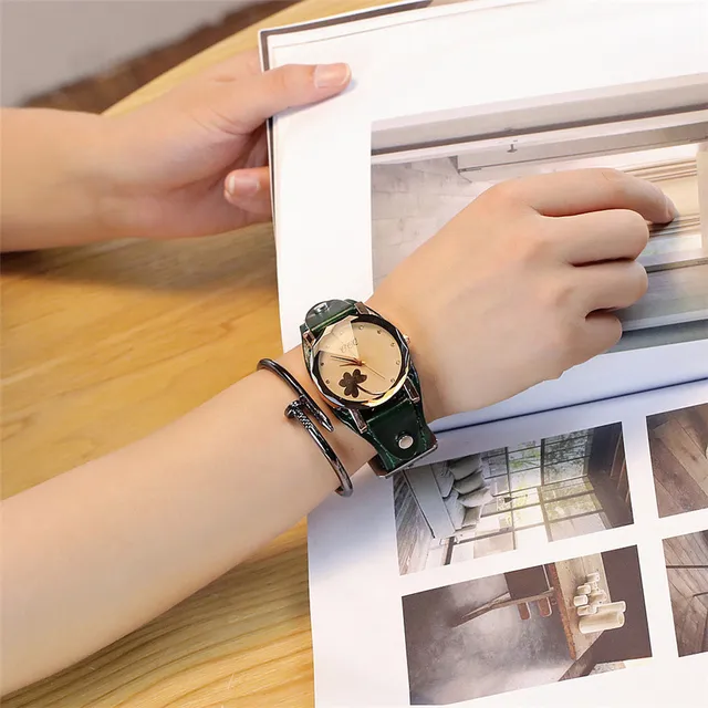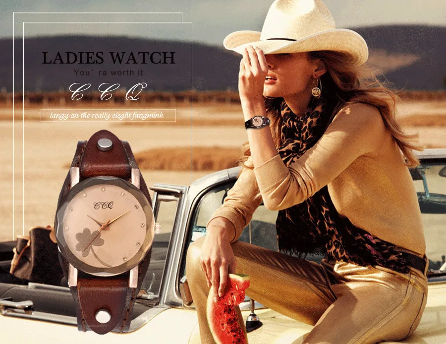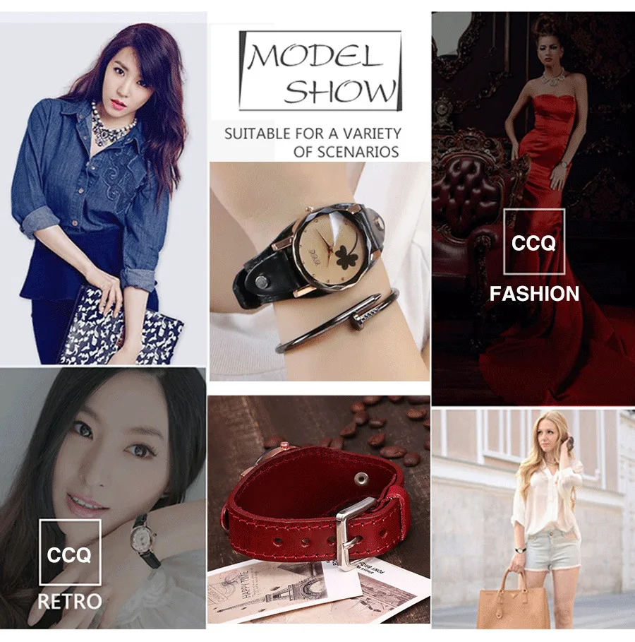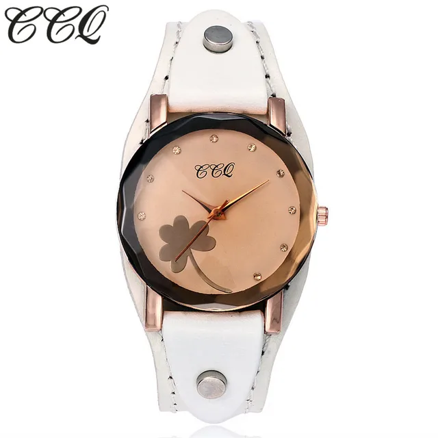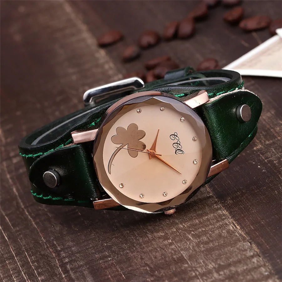 | [해외] 새로운 CCQ 브랜드 빈티지 소 가죽 클로버 팔찌 시계 여성 캐주얼 가죽 석영 손목 시계 선물 시계 Montre 팜므 |