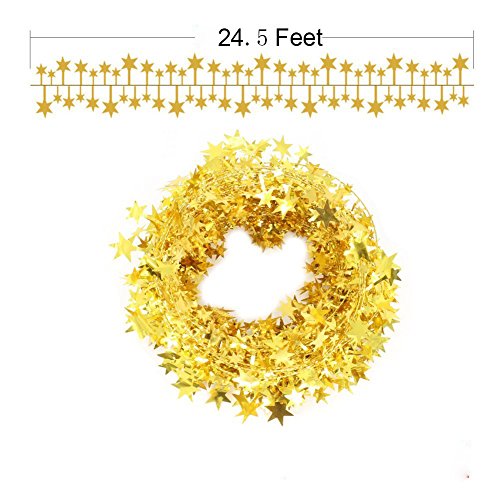 Seventopia Christmas Tree Garland Ornaments Silver Wired Star Decorations 24.5 Feet for House Office Christmas Party