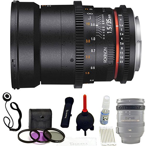 Rokinon DS 35mm t1.5Cine풀 프레임 렌즈for Canon EF마운트+ UV,광판,FLD 3피스 키트+ Giottos Large클리닝 키트with S