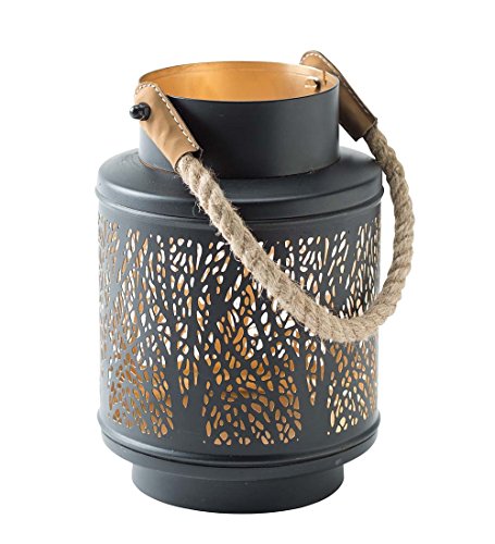 -. Feature : Metal lantern with rope handle / 360 Degree detailed laser-cut tree design / Add your candle or lights (not included) / Two-tone finishes highlight the design / Rope handles add texture