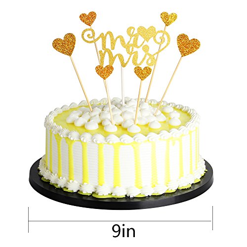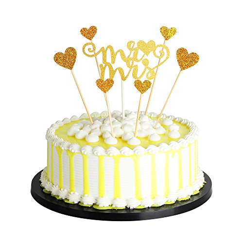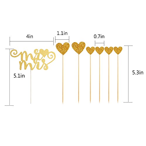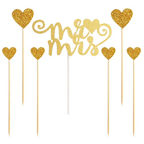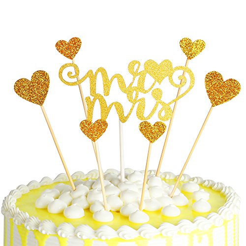 - Includes: 6 gold glitter love star, 1 Gold Glitter "Mr and Mrs" cake toppers