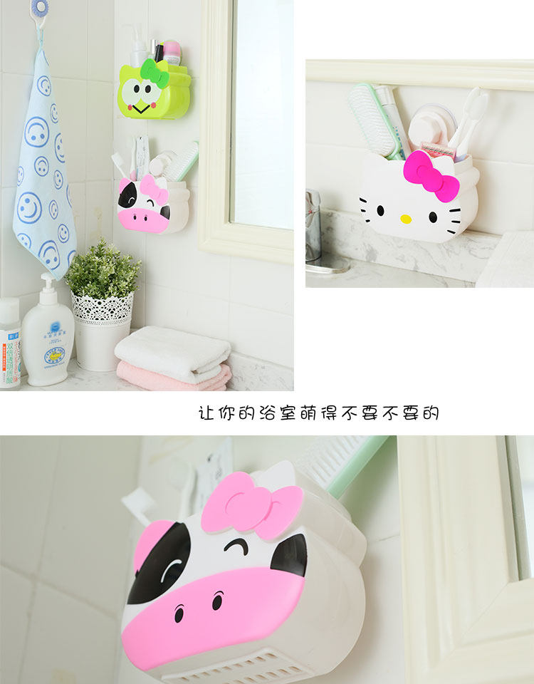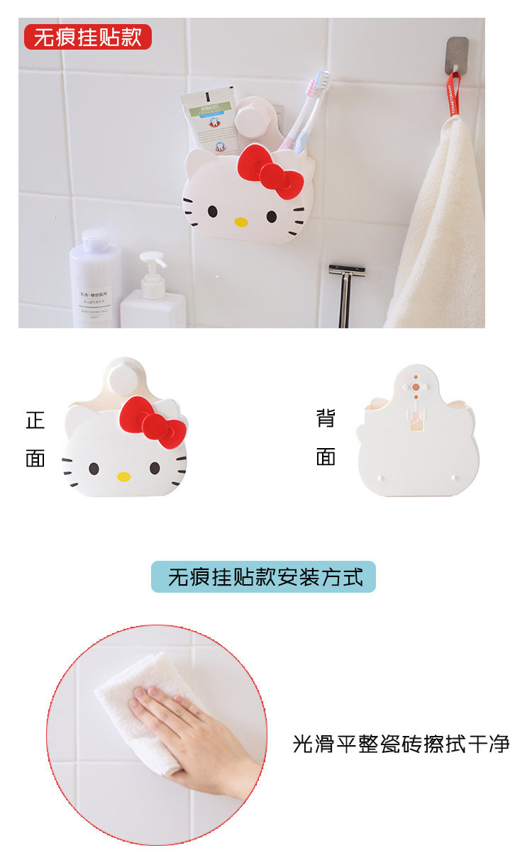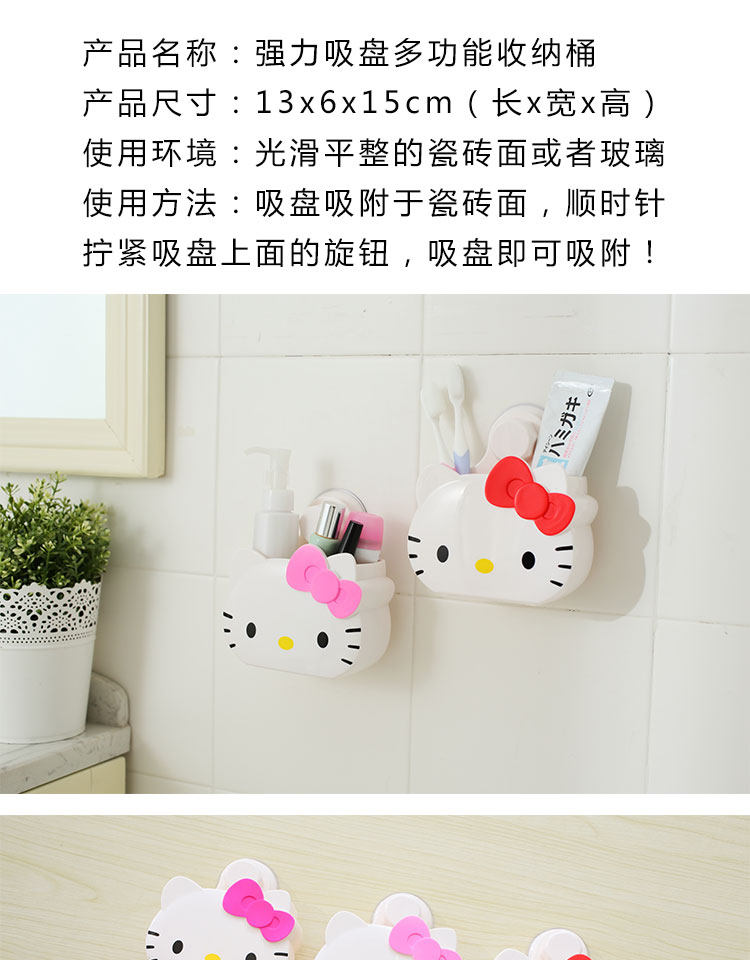 kitty强力吸盘牙刷架套装浴室收纳桶吸壁挂式无痕贴牙具座置物架