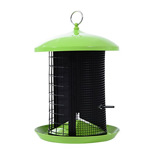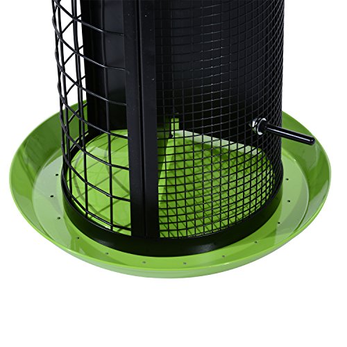 -. Binding : Misc. -. Brand : Pawhut -. Color : Black -. EAN : 0842525106085 -. Feature : ✔ SQUIRREL-PROOF DESIGN: The mesh wire barrier protects against damage by squirrels and other pests while allowing birds easy access to the seeds inside. / ✔ BIRD WATCHERS DELIGHT: With 3 separate chambers for different types of feed-- you'll be able to attract a wide variety of different bird types all with one product. / ✔ STYLISH AND FUNCTIONAL: The eye-catching lime green color, two perches for birds to rest on, bottom tray for catching loose seeds and stainless steel loop hanger make it an ideal backyard bird attracter. / ✔ EASY TO USE: Perfect for beginners or bird feeding experts to use. You simply fill the chambers with seed and then sit back and watch as wildlife flocks to your feeder. / ✔ NO ASSEMBLY REQUIRED: Fully assembled right out of the box, all you have to do is hang the feeder in your desired location and wait for the birds to arrive. -. Label : Pawhut -. Manufacturer : Pawhut -. Model : D11-002 -. MPN : D11-002 -. NumberOfItems : 1 -. PackageQuantity : 1 -. PartNumber : D11-002 -. ProductGroup : Pet Products -. ProductTypeName : PET_SUPPLIES -. Publisher : Pawhut -. Size : φ9.5" x 13"H -. Studio : Pawhut -. Title : Pawhut Triple Chamber Squirrel Resistant Outdoor Bird Feeder - Lime Green/Black -. UPC : 842525106085