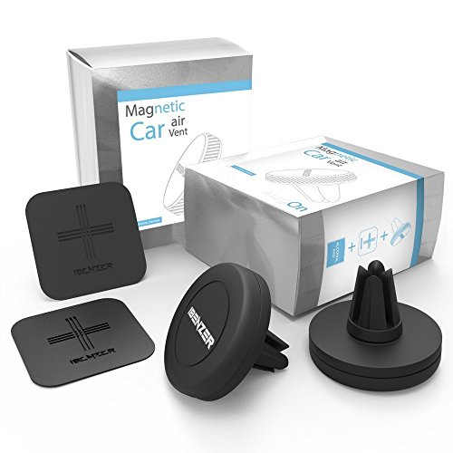 iBenzer MagOn One Touch Universal Air Vent Magic Car Mount Holder for All Smartphones iPhone 7 7S & 7 7S plus iPhone 6 6S plus Galaxy S7 S6 Edge OnePlus 3, Black, pack of 2