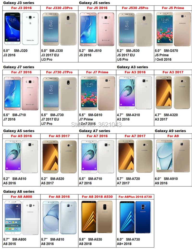 Size:Caes for Galaxy A3 A5 A6 A7 J3 J4 J5 J6 J7