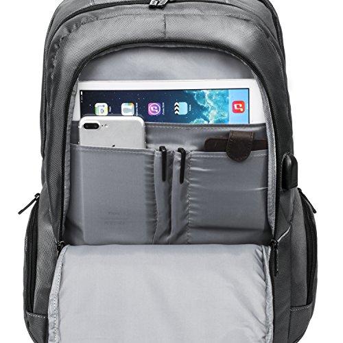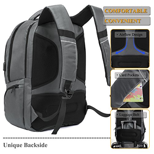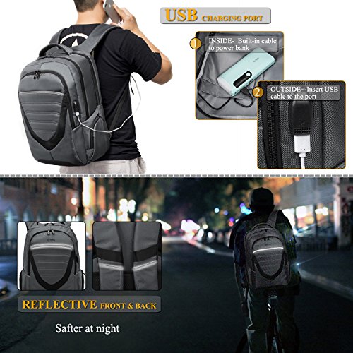 With a USB 2.0 Charging Port extended out the side,the light reflection strips both on front and back,multi-compartment design with various pockets and attractive looks,this is an ideal multi-functional durable backpack for the daily commute or business travel,or used as a school bag. This backpack with a well padded built-in laptop sleeve and tablet PC sleeve protects your devices very well on the go,also provides fashion style and functional organization for everyday use in comfort.