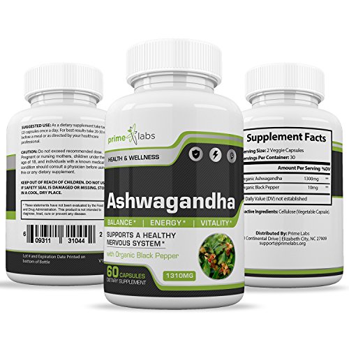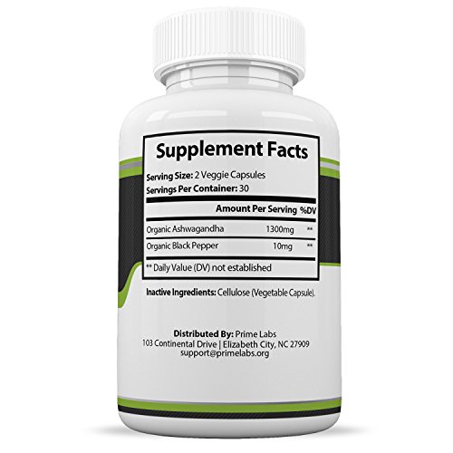 -. Title : Organic Ashwagandha Capsules :: Natural Dietary Supplement for Anxiety Relief, Energy & More :: With Black Pepper for Enhanced Absorption :: Potent 1300mg Daily Dosage, 30 Day Supply by P.R.Ime Labs