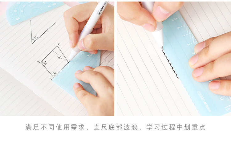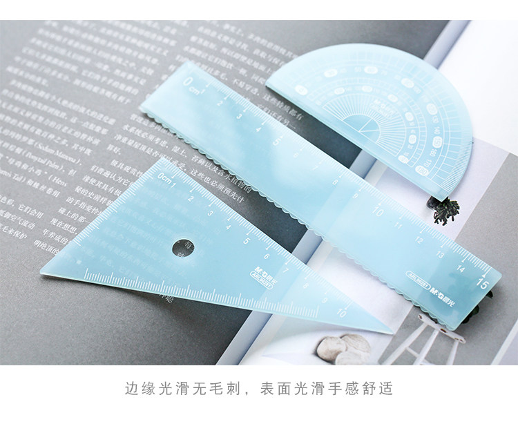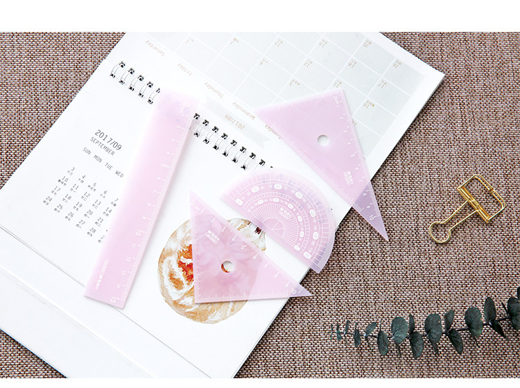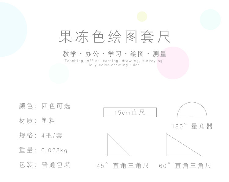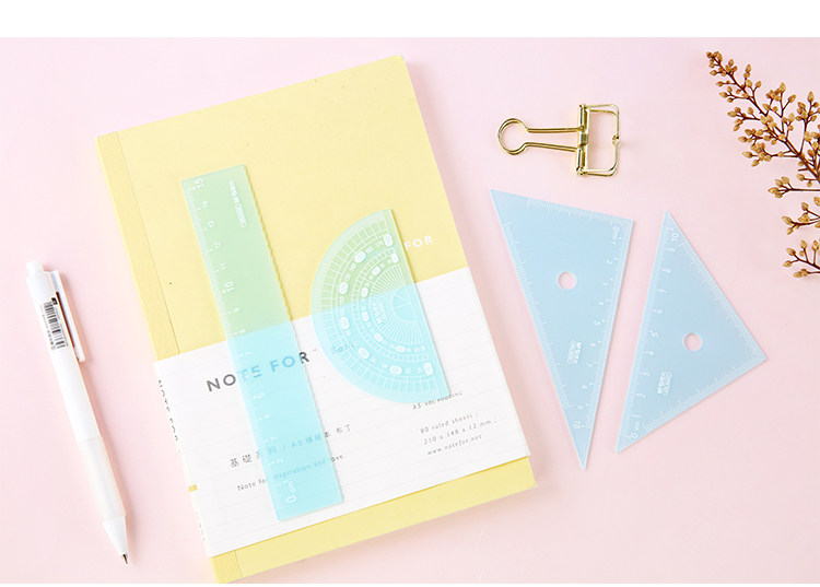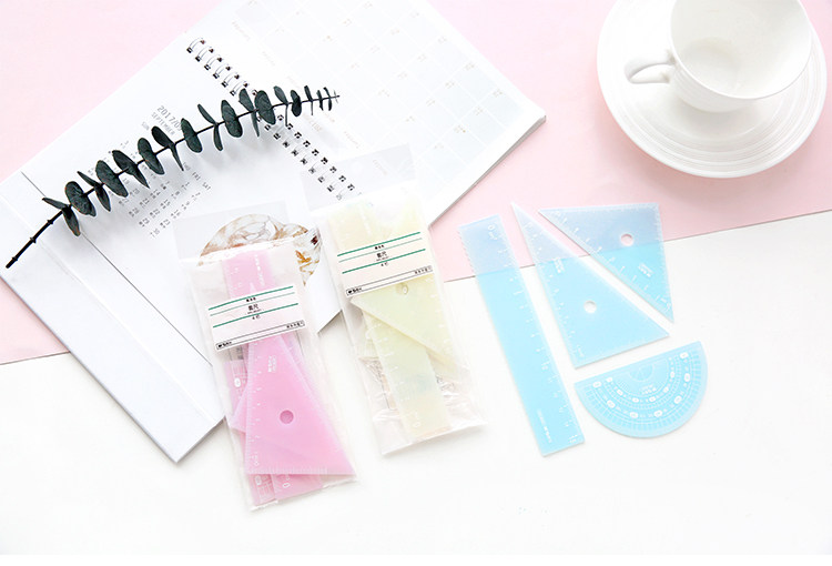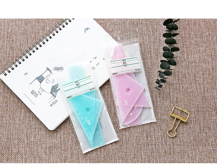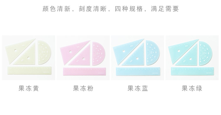 夏日清新果冻色绘图套尺 直尺三角板量角器4把套装办公学习测量尺