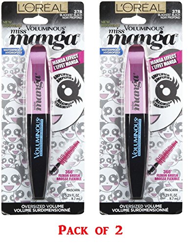 -. Binding : Misc. -. Brand : L'Oreal Paris -. Color : 378 Blackest Black -. EAN : 0071249273746 -. Feature : L'Oreal Paris Voluminous Miss Manga Mascara Waterproof, 378 Blackest Black (Pack of 2) -. IsAdultProduct : 0 -. Label : L'Oreal Paris -. Manufacturer : L'Oreal Paris -. NumberOfItems : 2 -. PackageQuantity : 2 -. ProductGroup : Beauty -. ProductTypeName : BEAUTY -. Publisher : L'Oreal Paris -. Studio : L'Oreal Paris -. Title : L'Oreal Paris Voluminous Miss Manga Mascara Waterproof, 378 Blackest Black (Pack of 2) -. UPC : 071249273746
