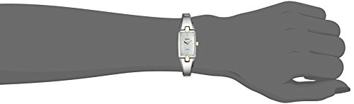 -. Feature : Rectangular watch in stainless steel featuring logoed mother-of-pearl dial with gold-tone accents / Japanese quartz movement with analog display / Hardlex crystal dial window / Features bangle bracelet with adjustable links and push-button clasp closure / Water resistant to 30 m (99 ft): withstands rain and splashes of water, but not showering or submersion