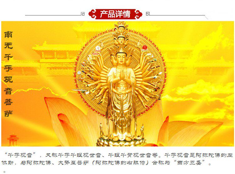 [effect] belongs to the "rat" whole life patron saint - thousand hand a Buddism godness Guanyin also called qianshouqianyan Guanyin thousand eyes thousand arm Avalokitesvara Bodhisattva is one of the four Chinesefolk belief. Thousand a Buddism godness Guanyin is Amitabha left retinuesand Amitabha mahasthamaprapta (the Amitabha right retinues) are collectively referred to as the "three saints of the west".