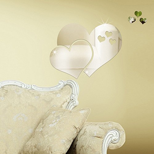 -. Title : Taloyer Mirror Style Modern Acrylic Wall Stickers Removable 3D Love Hearts Detachable DIY Decal Vinyl Mural Home Decor