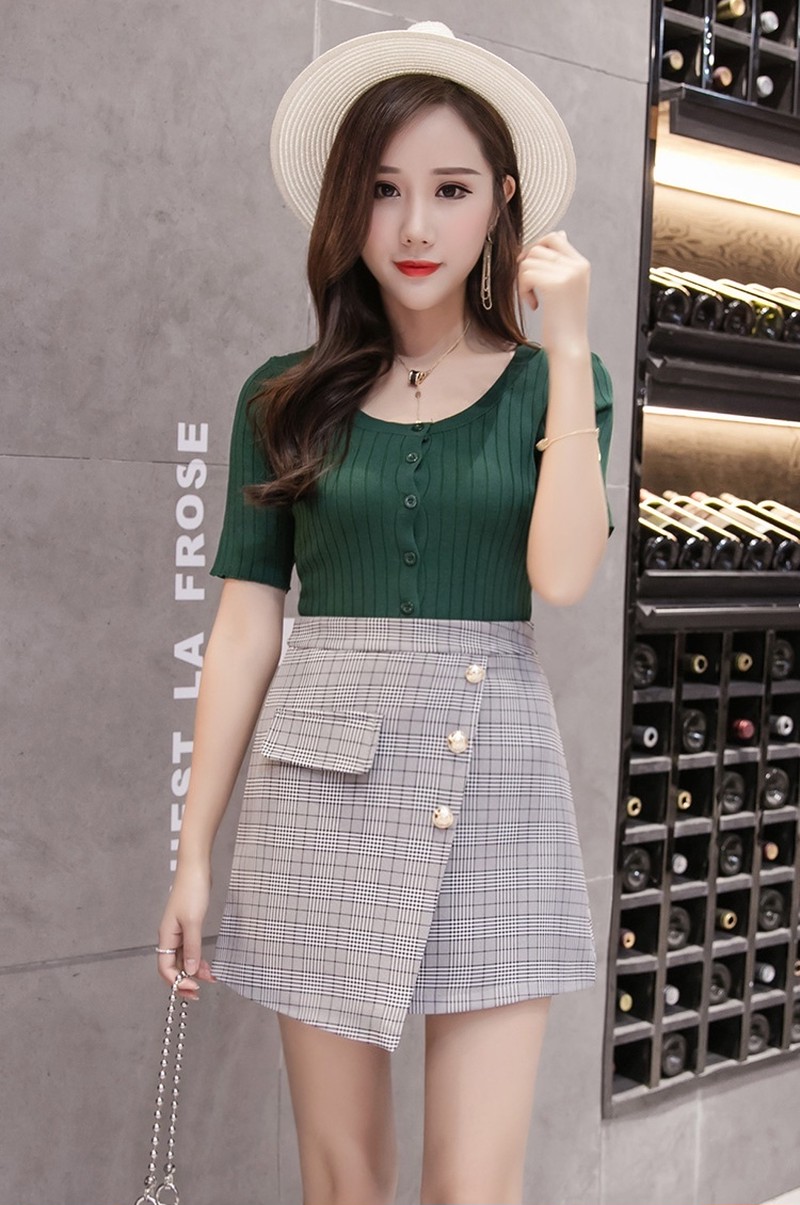 ♢ポイント♢ 存在感のあるビジューボタンが華やかさをアップしてくれる1着♪ チェック柄でこなれ感がプラスされるのでサラッとシンプルに着るだけでオシャレコーデが作れます◎