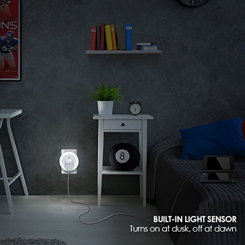 - CHARGE YOUR DEVICE SIMULTANEOUSLY — Convenient for charging your device while acting as night light at the same time — Plug in electronics, alarm clock, charge phone, tablet, and much more with built-in power outlet — NEVER LOSE ACCESS TO YOUR PLUG AGAIN — This multi-functional gadget includes a Power outlet so you can get light even while charging your phone — Simple solution for areas that need extra light and power outlet