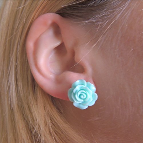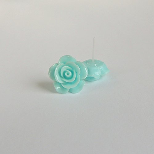 -. Title : 15mm Pale Turquoise Rose Plastic Post Earrings for Metal Sensitive Ears
