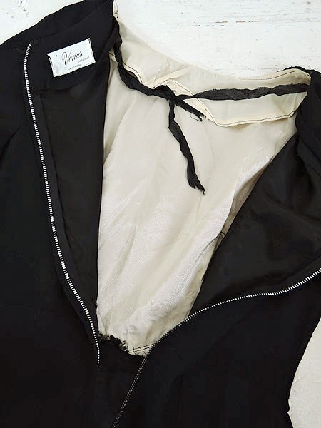 Ladies ブランド- カラー黒 メール便不可 コンディション★★★ 素材- 表記サイズ- スタッフコメントサイズ、素材表記なし ジョーゼットのような素材感です。 サイズは下記実寸サイズをご確認ください。 ファスナー ステッチ部分に糸のほつれ部分あり。 実寸サイズ 着丈 107 cm 身幅 50 cm 肩幅 37 cm 袖丈 45 cm ※ウエスト・ヒップ以外は平置き採寸