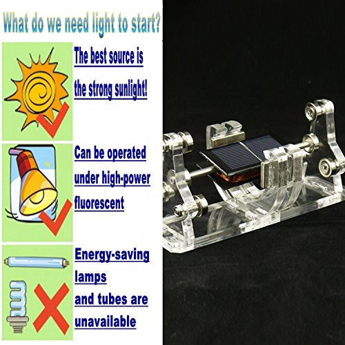 This is a real solar magnetic levitation motor model, pure handmade, composed of 2?solar silicon wafer, copper coils, shaft, NdFeB magnet, acrylic stent. Can save energy in incandescent light, solar light, the light, rotating in the suspended state, the maximum can reach one thousand rpm is interesting, choose your gift, the practice of science, scientific theory to explain and home furnishings!