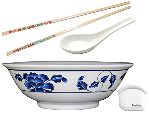 Includes 1: 45 ounce 8.75" soup bowl + 1 oriental soup spoon + 1 pair of chopstics