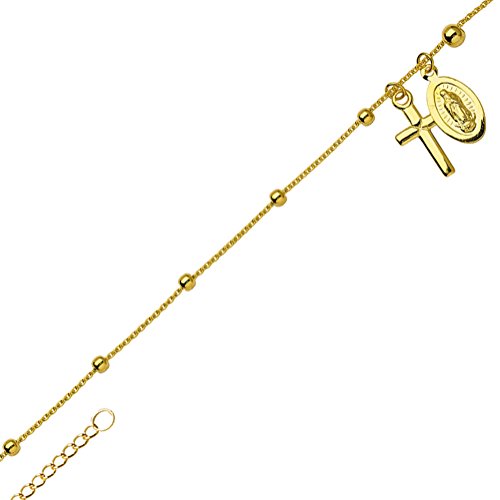 -. Title : Anklet 14k Yellow Gold Adjustable Length with Cross and Virgin Mary Medallion