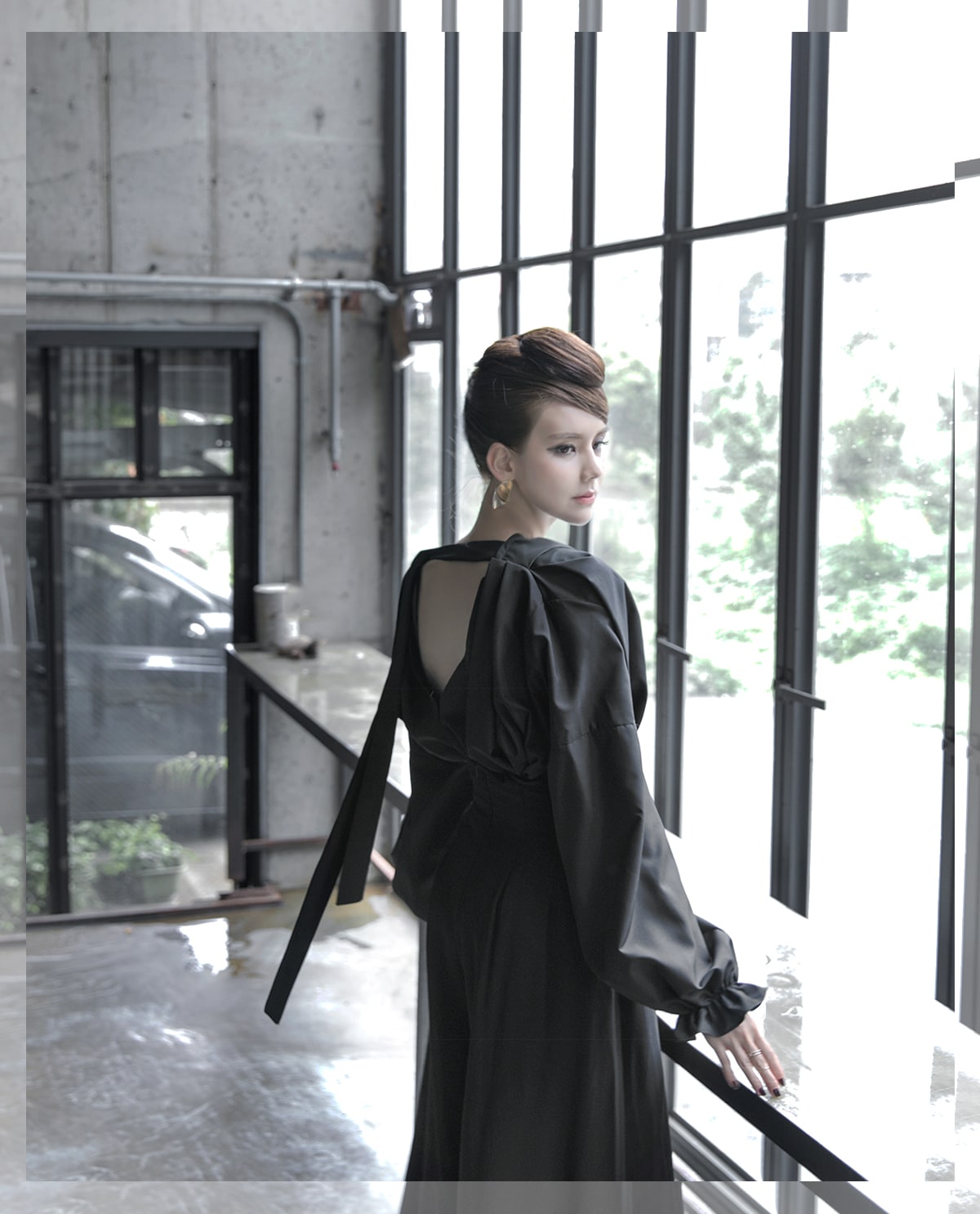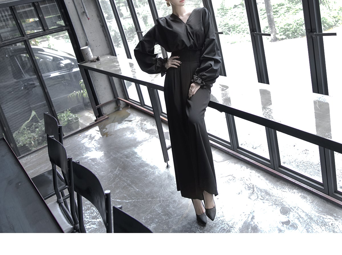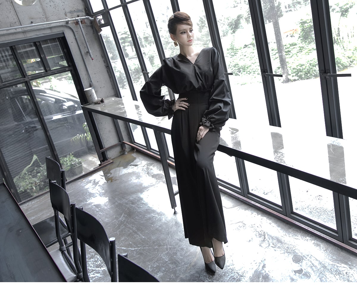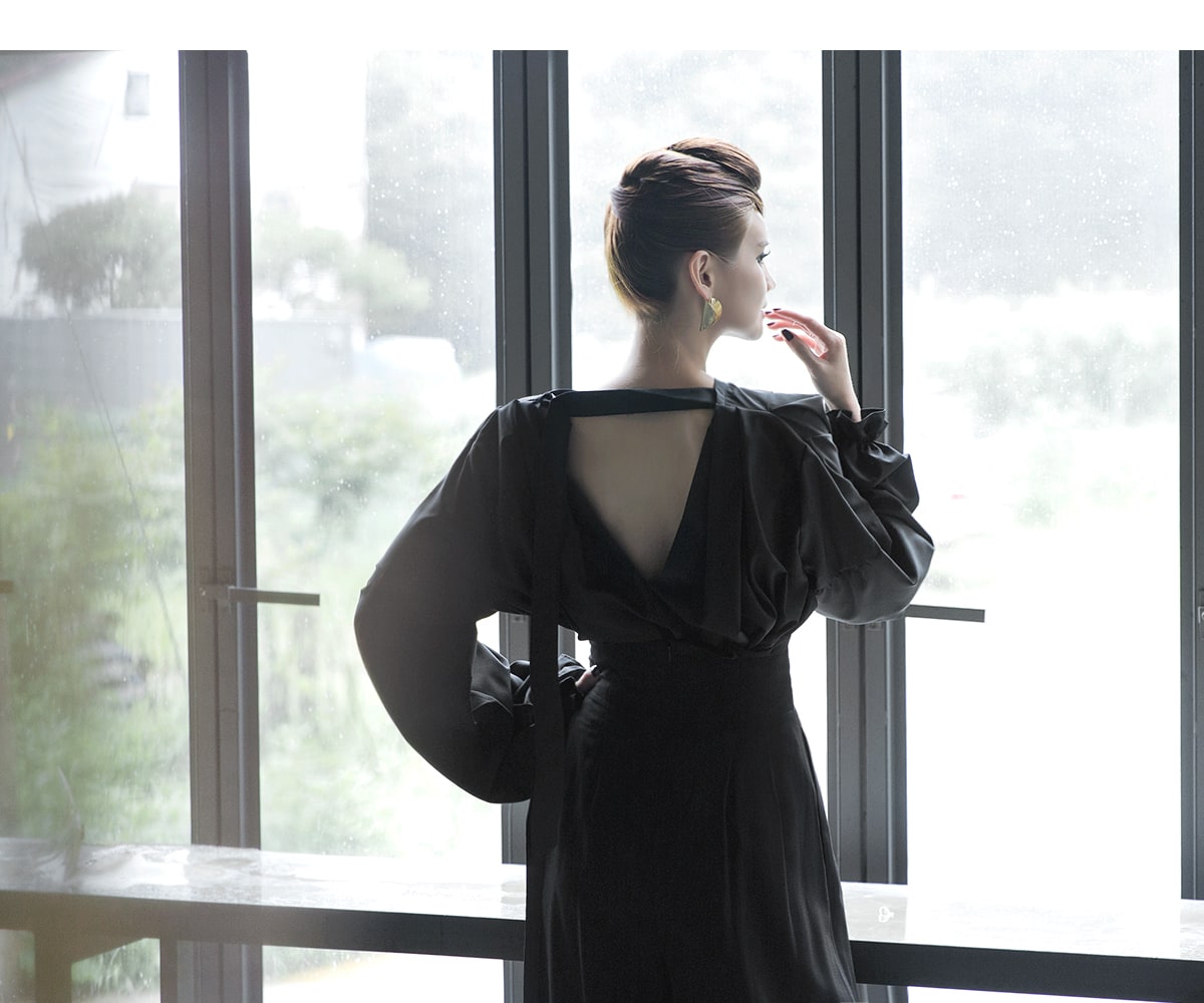 B-977 리니 백 포인팅 블라우스 Black