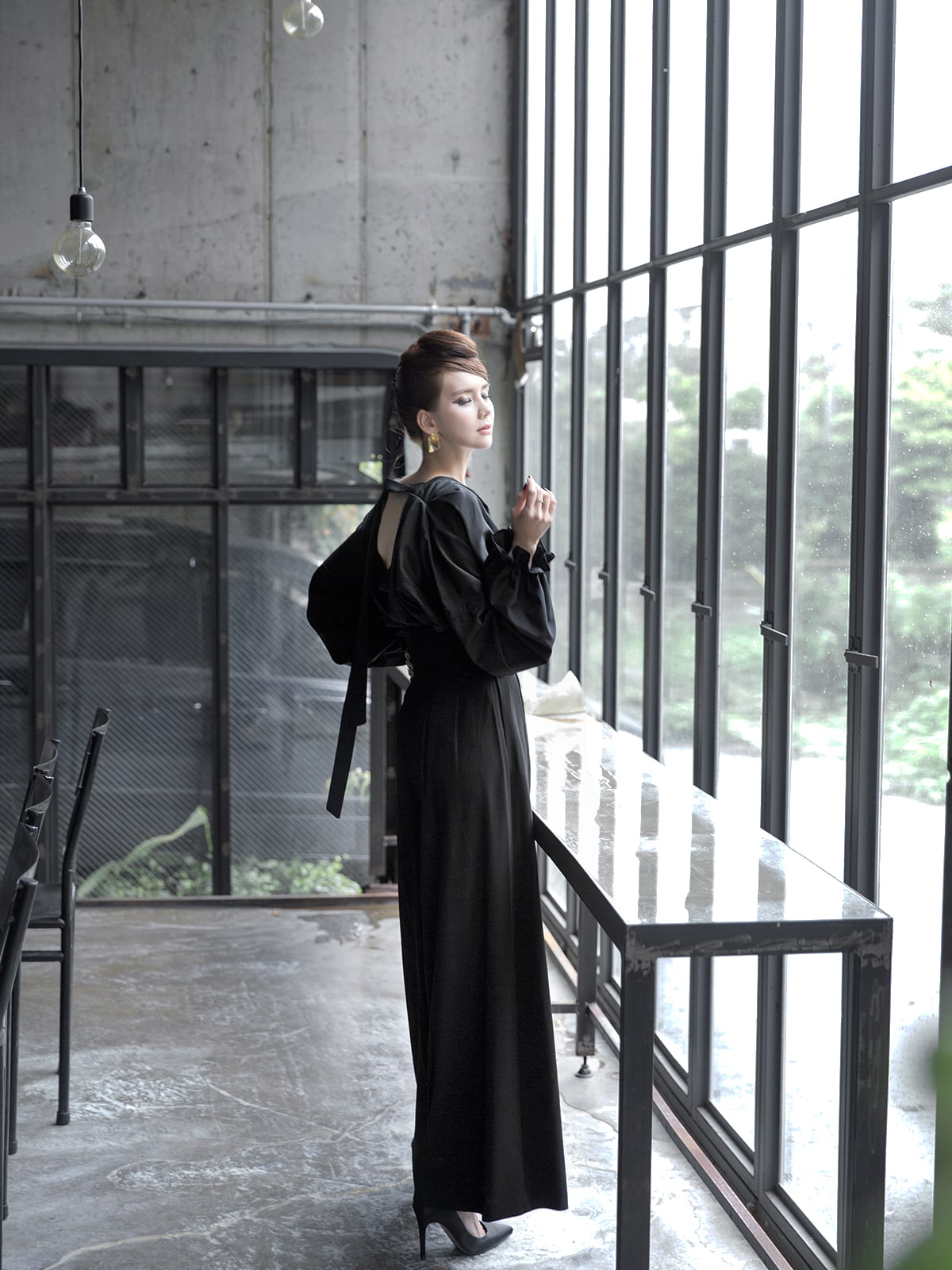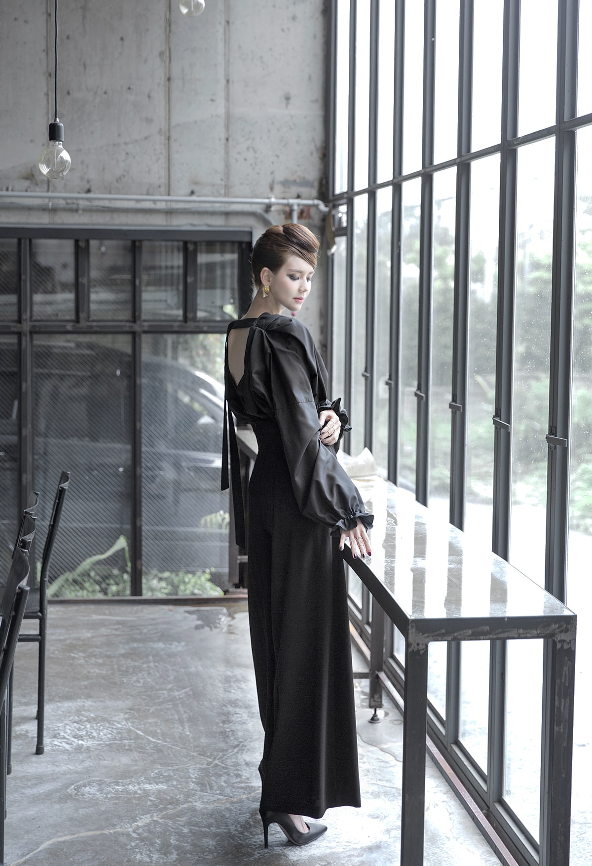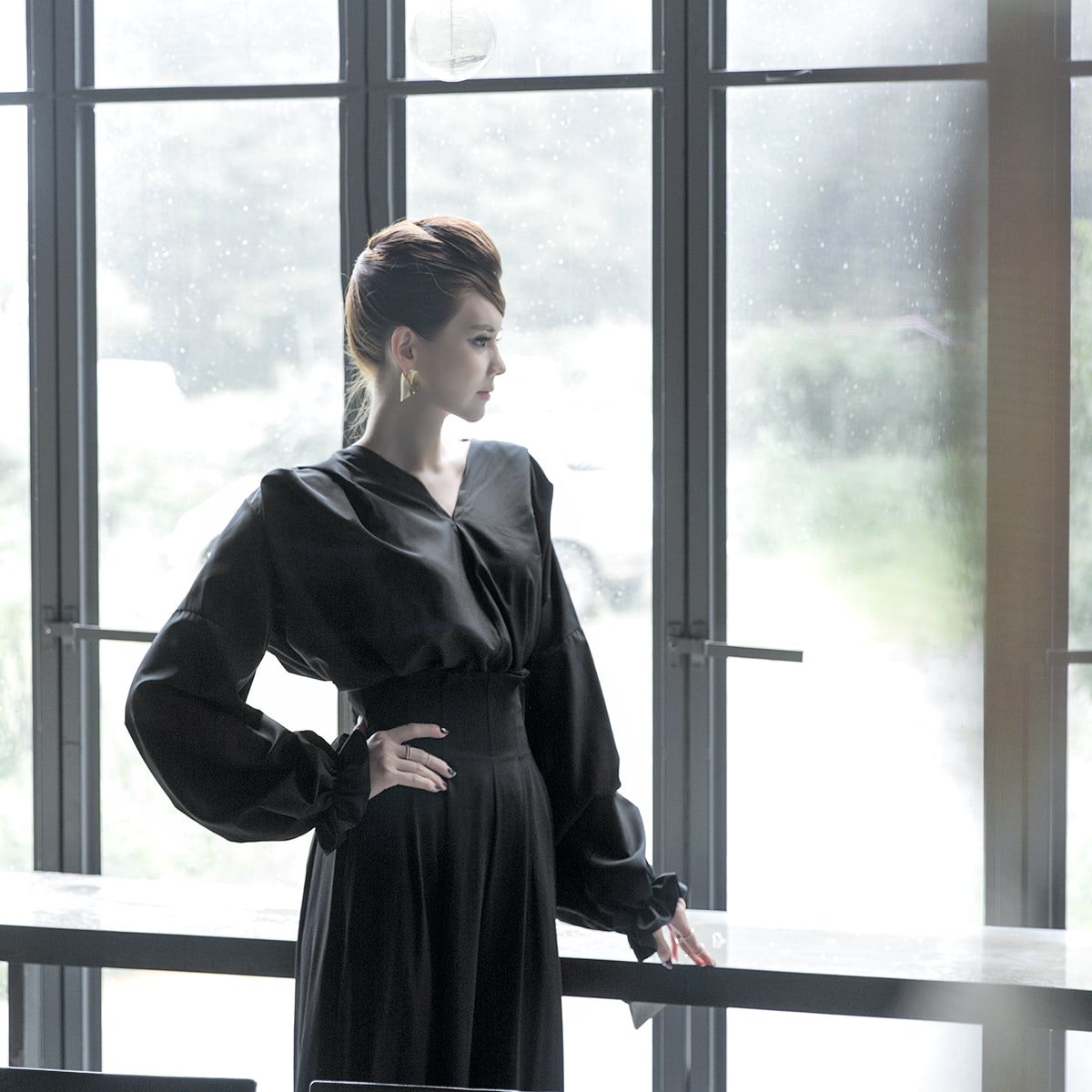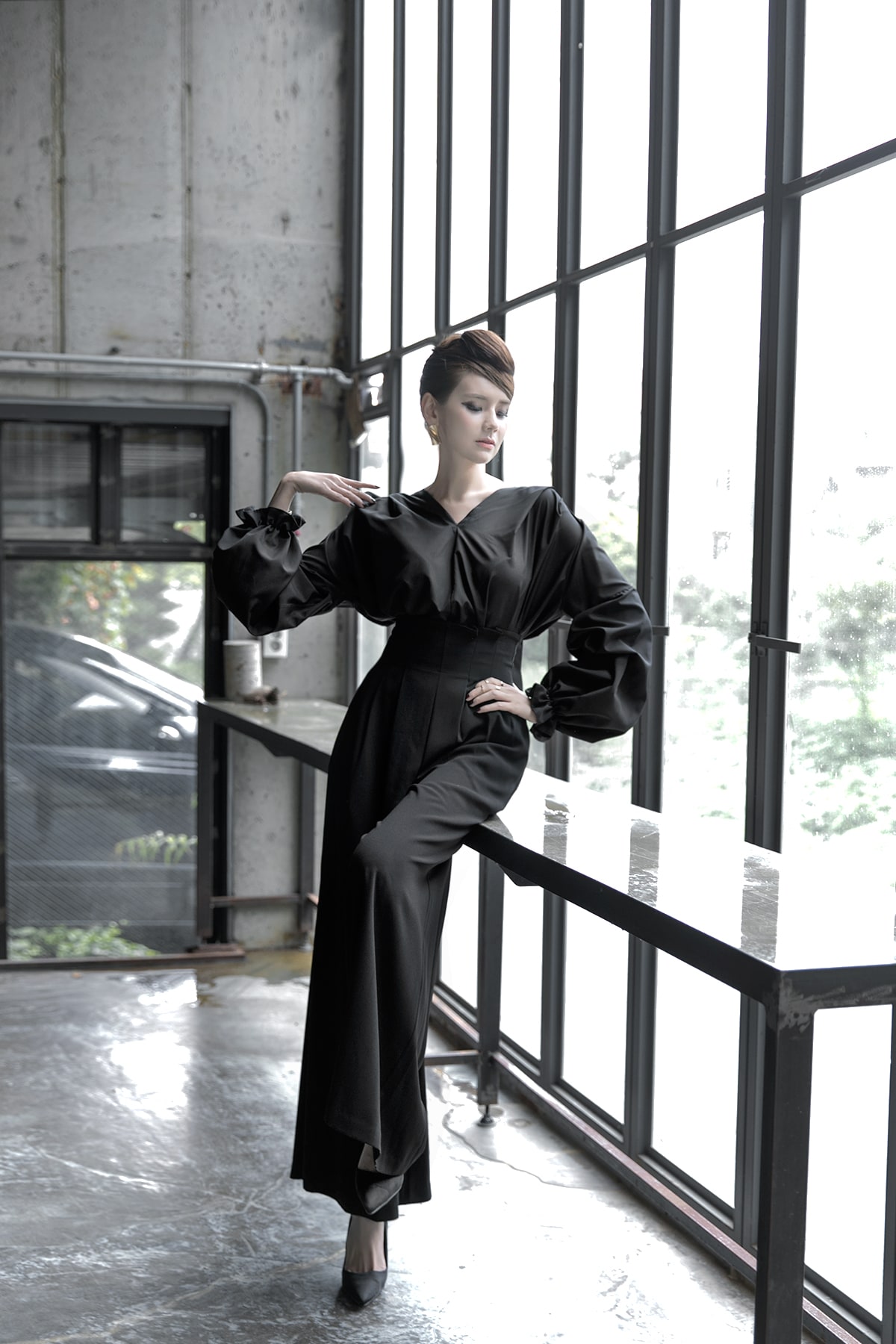 B-977 리니 백 포인팅 블라우스 Black