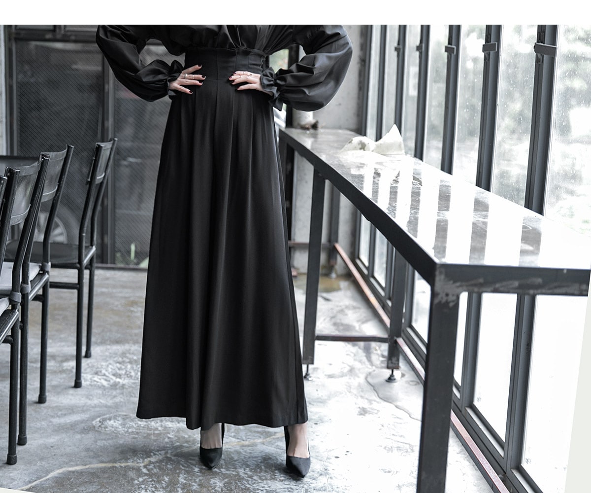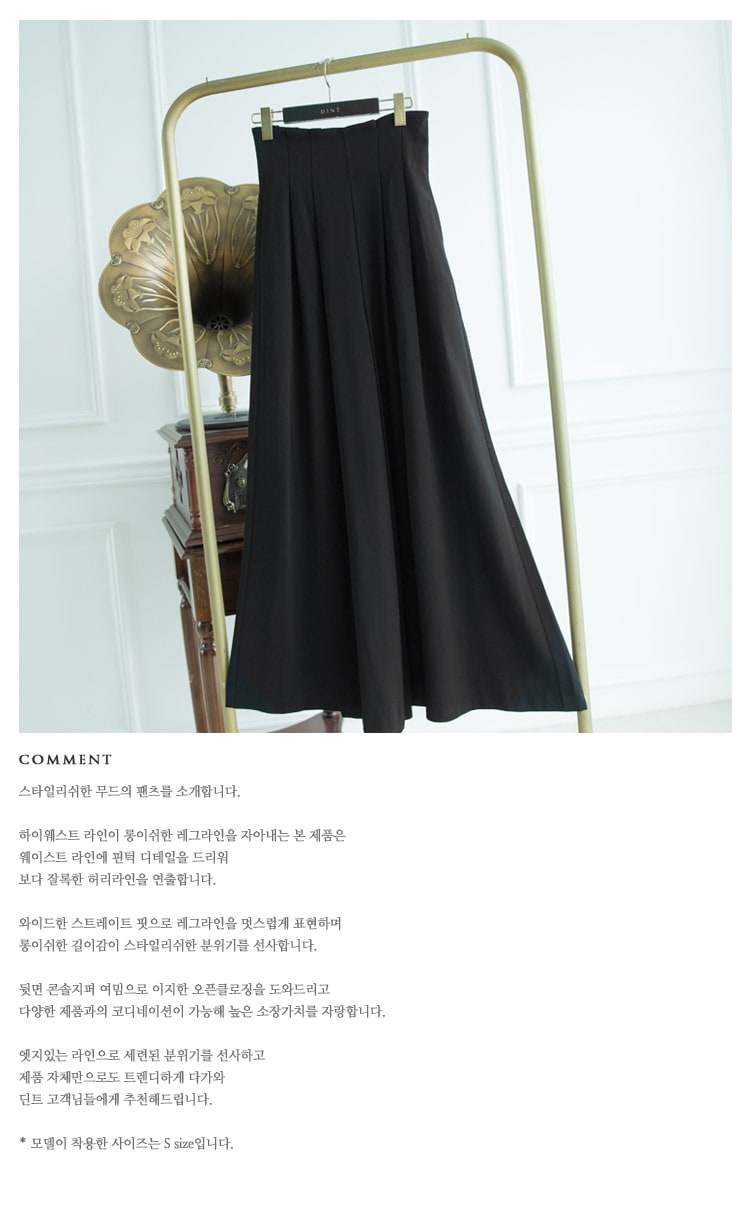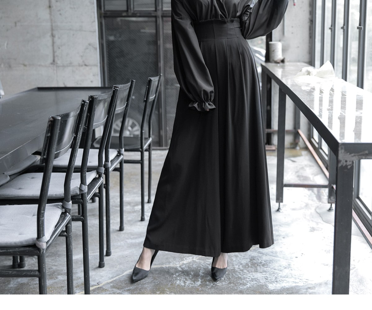 P1922 하이 핀턱 롱 와이드 팬츠 Black