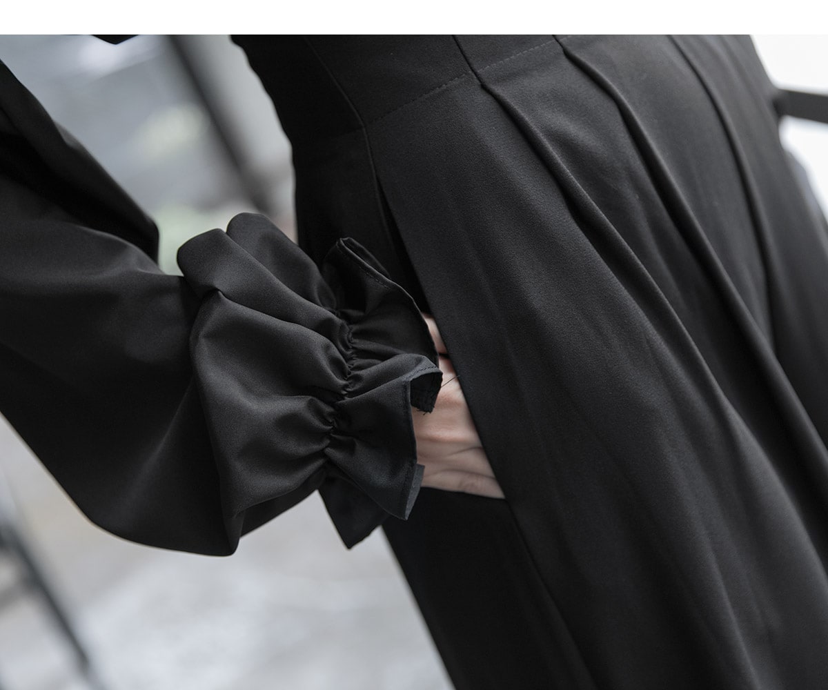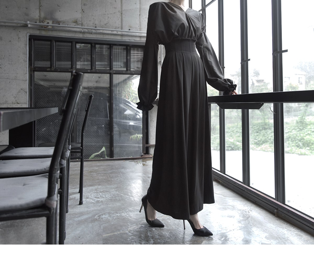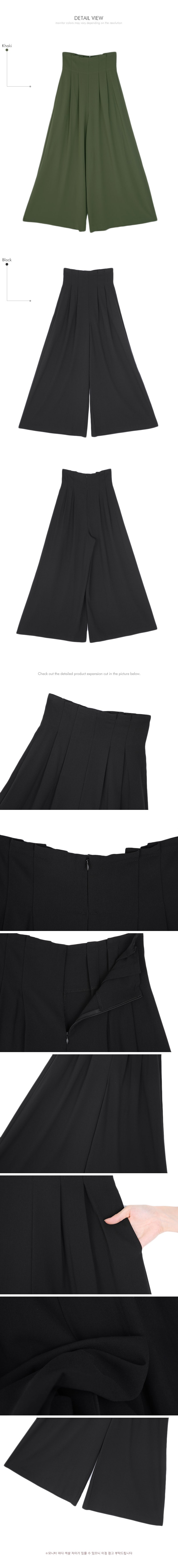 P1922 하이 핀턱 롱 와이드 팬츠 Black