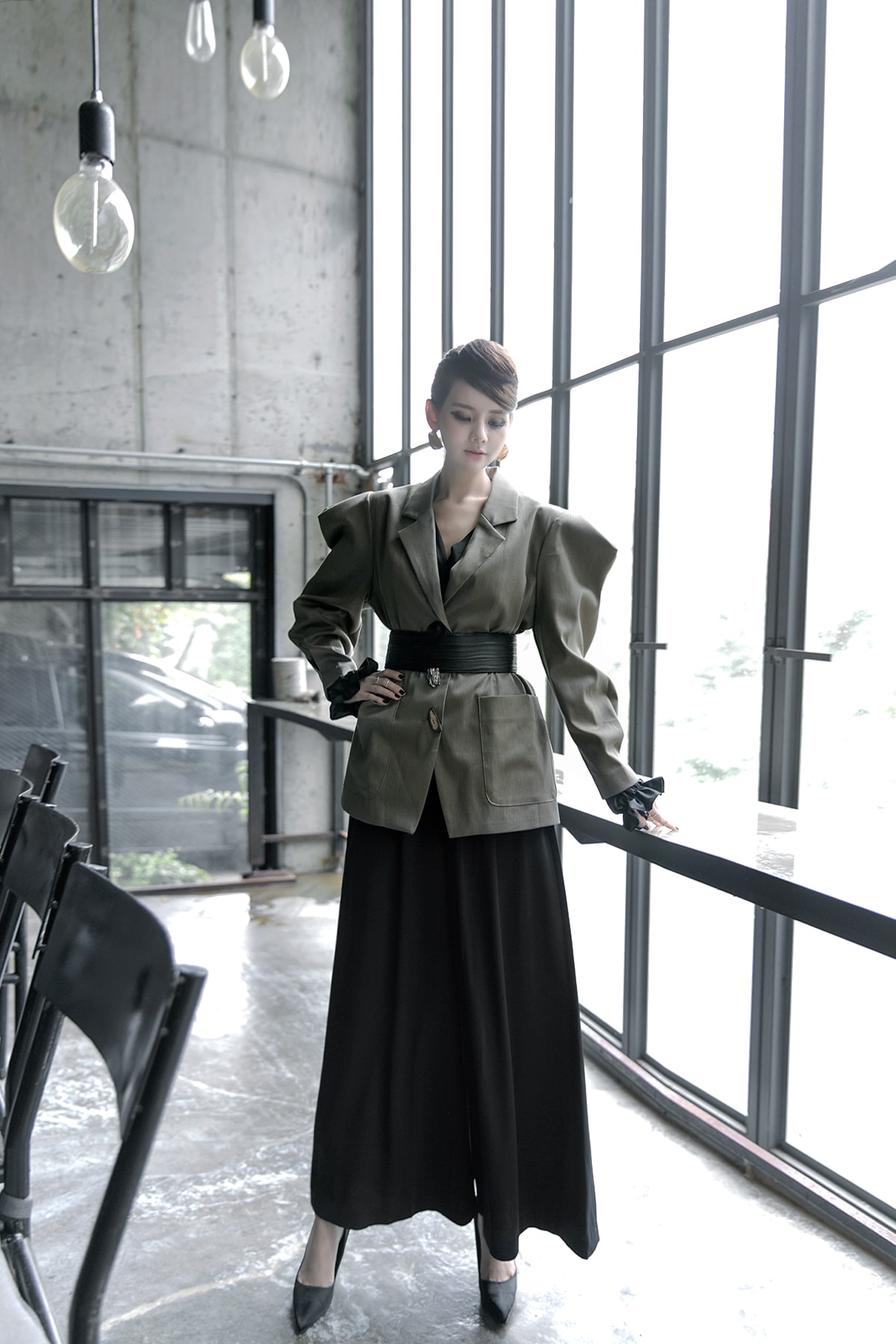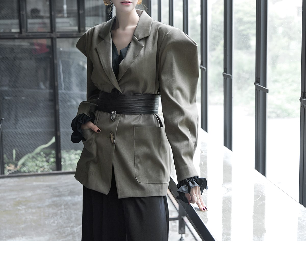 J-9006 유리아 버튼 포인트 자켓(벨트set) Khaki