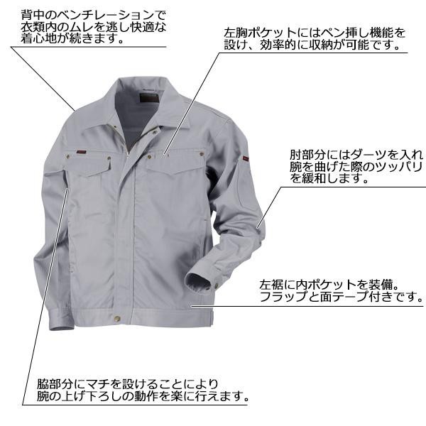 しわになりにくく丈夫なT/C素材を使用し、織り目をヘリンボーン(杉綾織り)にすることで無骨になりすぎず、いつもと違う雰囲気で着こなせます。肘のダーツや脇のマチなどによって、腕の上げ下ろしもラクラクです。背中のベンチレーションで通気性も確保でき、快適なワークシーンをサポートします。 |