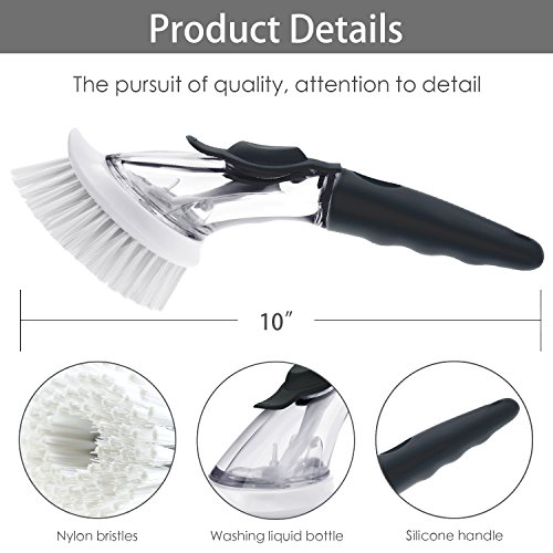 WIDELY USED : Really one great kitchen wash tool for cleaning all the pots and pans in your kitchen.Vegetable fruit scrubber is perfect to be used for any cleaning or scrubbing purposes.This soap dispensing dish brush could be one great essential kitchen tool for your daily life