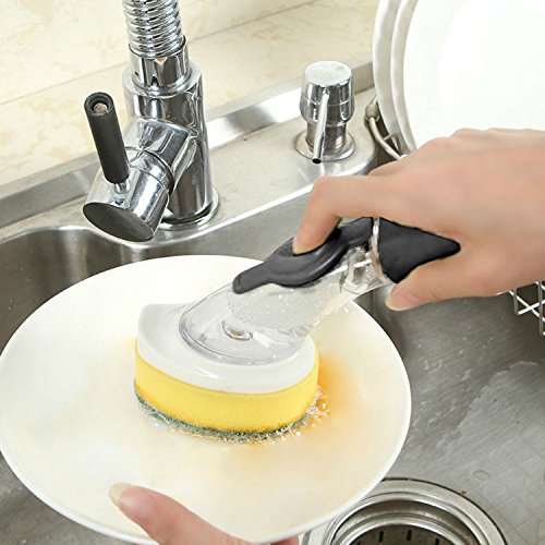 EASY & CONVENIENT TO USE: Gadget-Hydraulic Kitchen Wash Tool is very simple and easy for you to add detergent inside the scrub brush and make the wash clean work easily.Just push the button of the kitchen scrubber to dispense soap on demand.