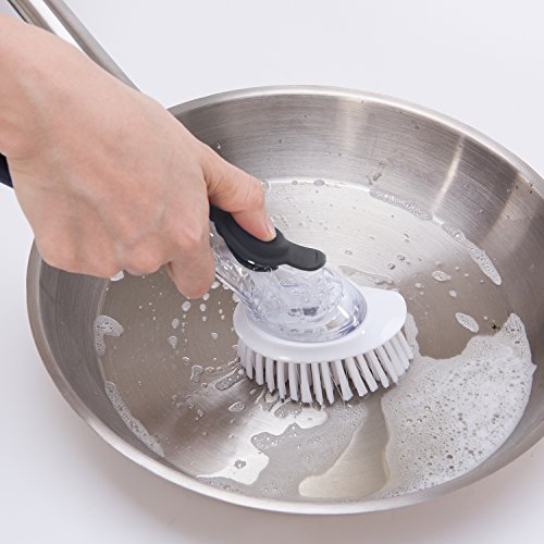 TOP GRADE BRISTLES : The exquisite bristles of the hydraulic dispense wash tools are high-density and very soft to touch the Dish Bowl Palm Pot, really one healthy and safe dish wash brush for kitchen daily use