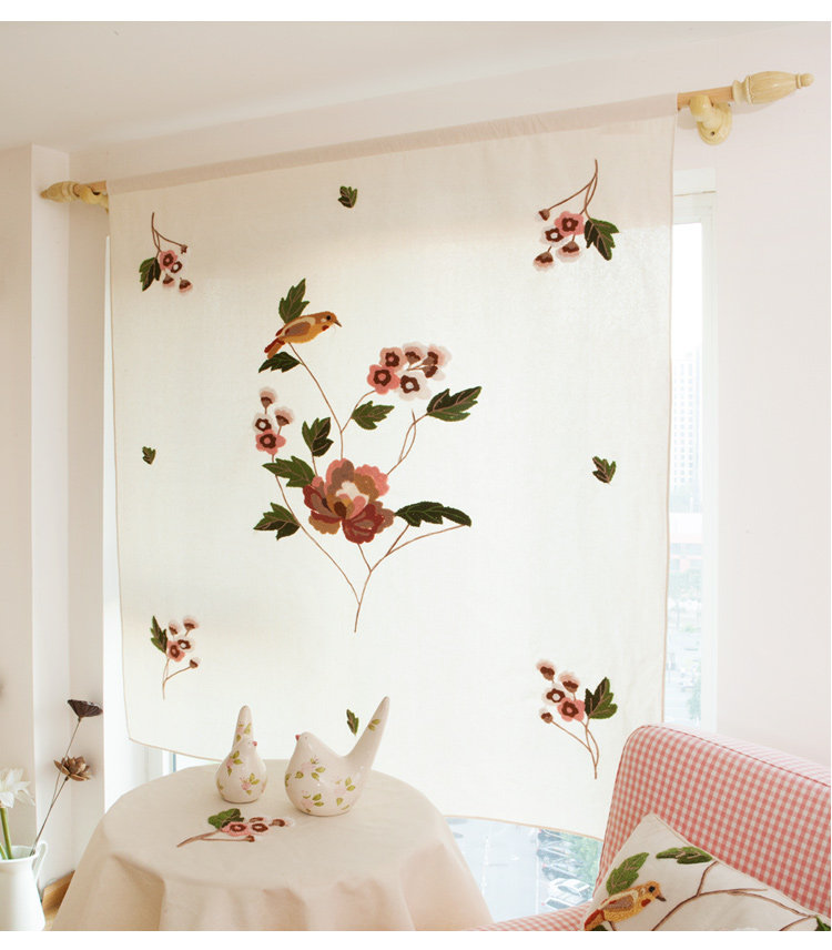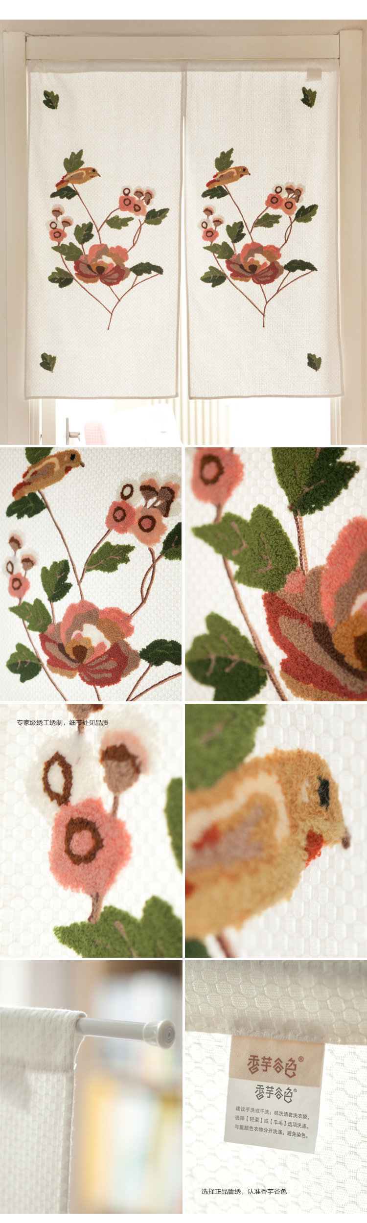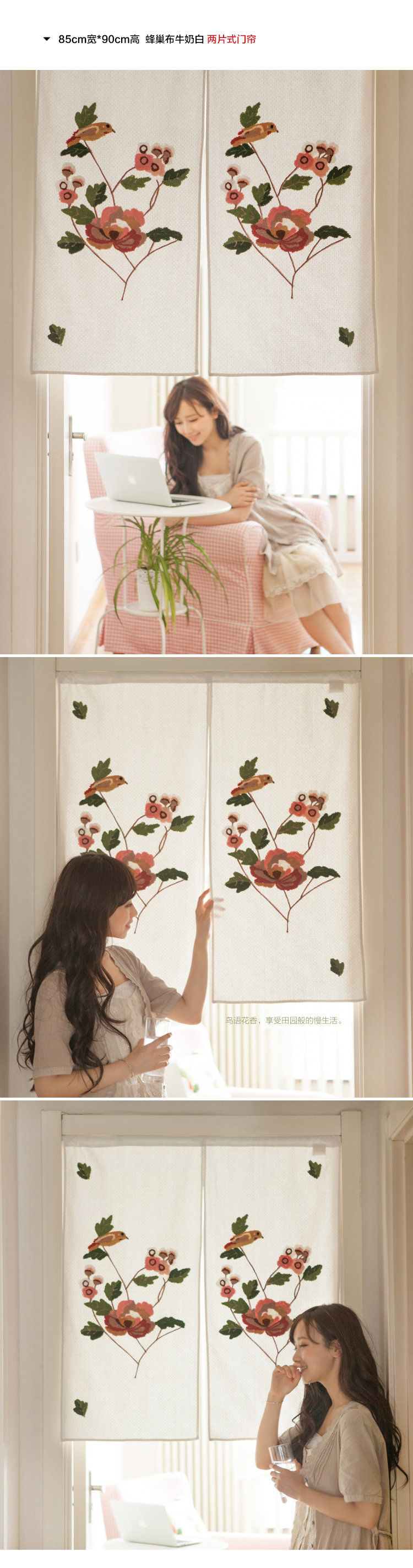 一日一叶&门帘 85cm*90cm 牛奶白、米黄色 100%棉、棉麻 手工毛线刺绣 该商品不包括门帘杆
