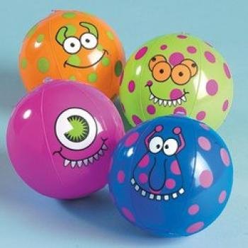12 Inflatable Mini approx. 4.5 Monster Beach Balls, Assorted by Fun Express