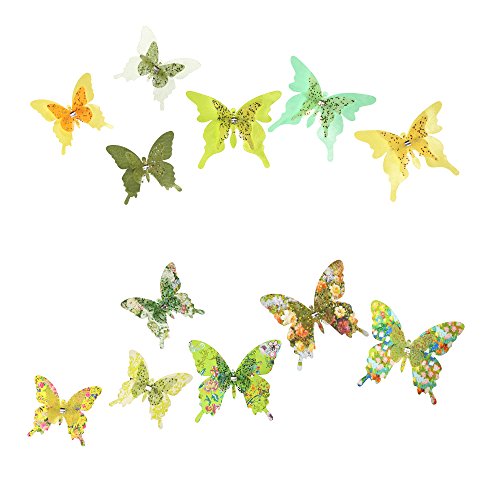 Roser Life Artificial Butterfly Clips Handmade Boho Decorations Yellow Green (Pack of 12)