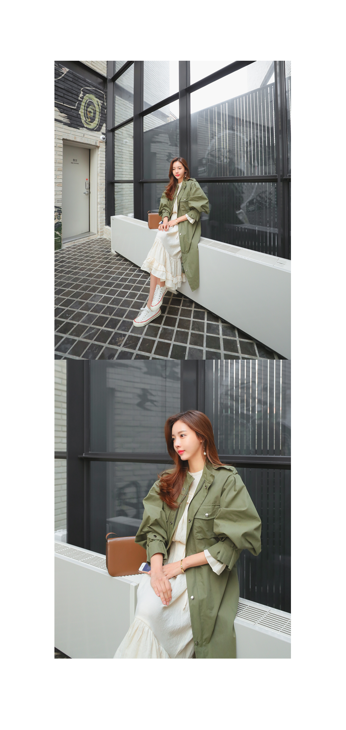 롱 기장으로 제작되어 체형커버에도 좋은 야상 아이템이랍니다.