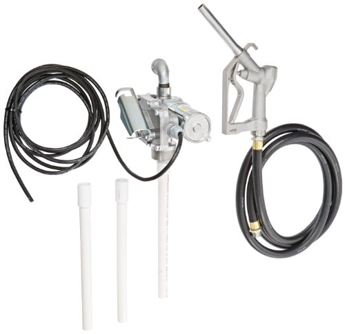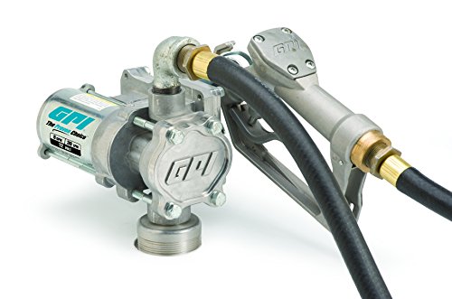 GPI 137100-01, EZ-8 Aluminum Fuel Transfer Pump, 8 GPM, 12-VDC, 0.75-Inch Manual Nozzle, 10-Foot Hose, 15-Foot Power Cord, Adjustable Suction Pipe