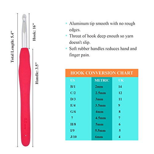 Extremely comfortable, lightweight crochet needles with soft rubber handles which reduces or eliminates hand, wrist or finger pain. Ideal for people with ARTHRITIS