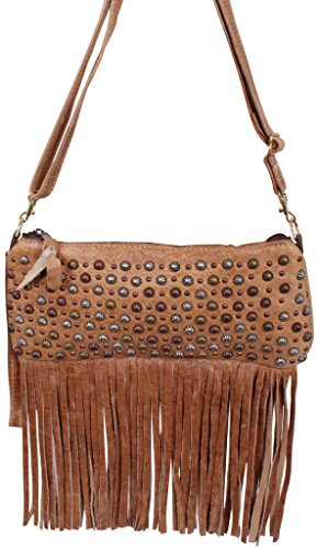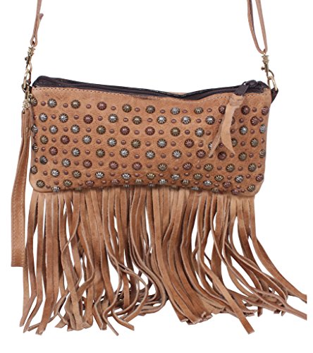 Product Description This Double J Saddlery Small Camel Fringed Leather Clutch LC26 features camel pull-up leather with multi parachute dot design and fringe. 0