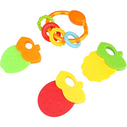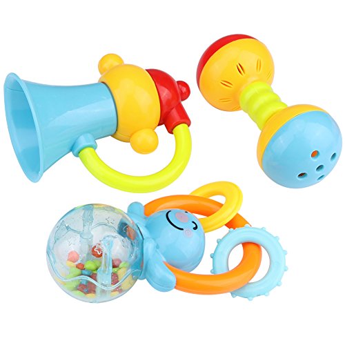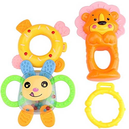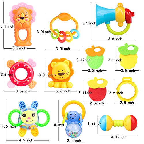 ZesGood 12 Piece Baby Rattle Newborn Toys Fun Cartoon Musical Flash Teether Handle and Rattle Play Toy Gift Set (9pcs Toys + 3pcs Teether)