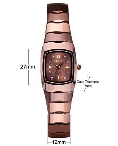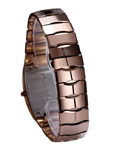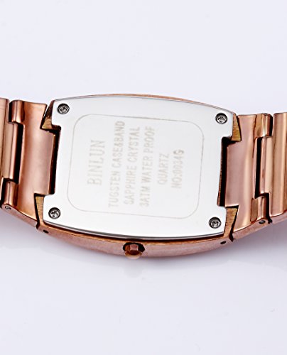 -. Binding : Watch -. Brand : BINLUN -. Department : womens -. Feature : Vintage tungsten steel body with push-button hidden clasp / Japanese quartz movement with analog display / Rectangle case with sapphire crystal for scratch resistant; Black dial ,crystal hour markers / Water resistant to 30m (98ft): withstands rain and splashes of water but no showering / Specification: case diameter: 0.78 inches (20mm), case thickness :0.27 inches (7mm), band width:0.47(12mm) -. Label : BINLUN -. Manufacturer : BINLUN -. Model : BL0034LWR -. MPN : BL0034LWR -. PackageQuantity : 1 -. PartNumber : BL0034LWR -. ProductGroup : Watch -. ProductTypeName : WATCH -. Publisher : BINLUN -. Studio : BINLUN -. Title : Binlun Women's Rose Red Vintage Tungsten Steel Watch with Rectangle Case-Champagne
