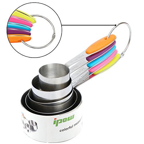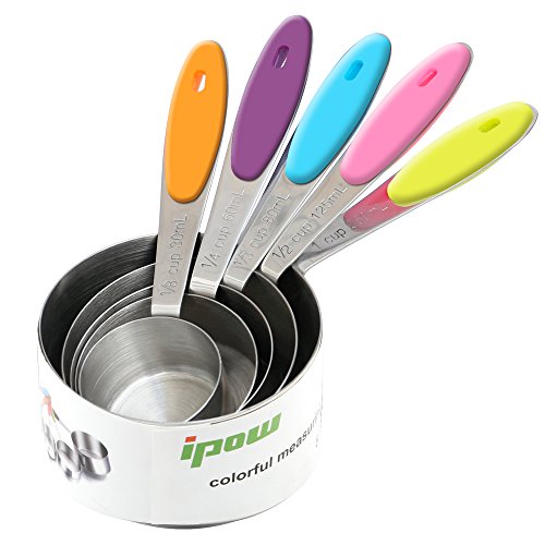 Thicker Handle,5 PCS Ipow Solid Sturdy Stainless Steel Stackable Measuring Cups Set to Measure Dry and Liquid Ingredients with Soft Handles,for Kitchen Cooking Baking