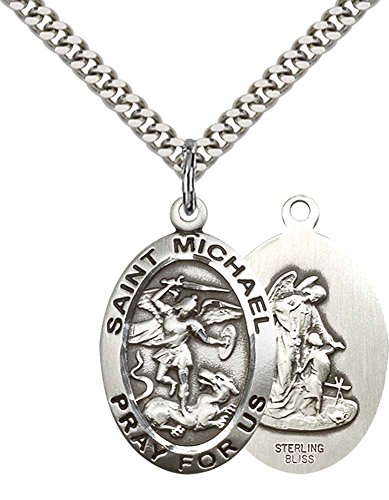 -. Binding : Jewelry -. Brand : F A Dumont Church Supplies -. Department : unisex-adult -. EAN : 7425624183183 -. Feature : .925 Sterling Silver Pendant with Stainless Steel ChainChain / Includes Deluxe Gift-Box / Made in USA / Lifetime Guarntee -. Label : F A Dumont Church Supplies -. Manufacturer : F A Dumont Church Supplies -. Model : 4027SS/24S -. MPN : 4027SS/24S -. PartNumber : 4027SS/24S -. ProductGroup : Jewelry -. ProductTypeName : FASHIONNECKLACEBRACELETANKLET -. Publisher : F A Dumont Church Supplies -. Studio : F A Dumont Church Supplies -. Title : Sterling Silver St. Michael the Archangel Pendant with 24" Stainless Silver Heavy Curb Chain. Patron Saint of Police Officers/EMTs