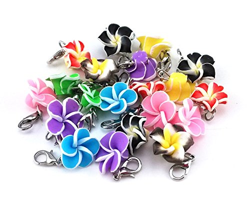 yueton 20pcs Assorted Color Frangipani Flower Dangle Charms Pendant with Lobster Clasp Jewelry Making Accessory Fit Floating Locket Charms Necklaces